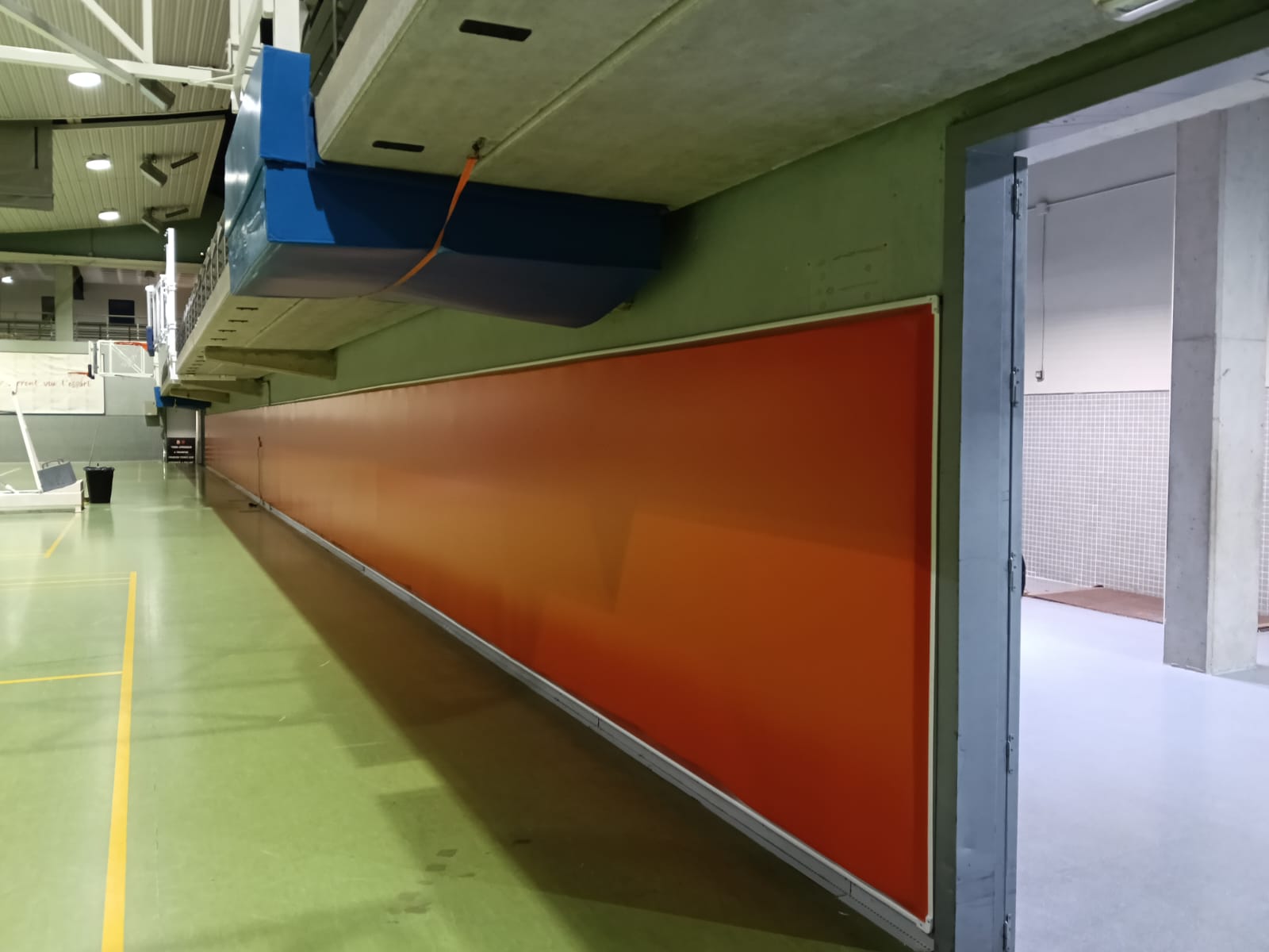 En pabellones y salas ajustamos los protectores a las formas de las paredes o vallados, combinando diseños y tipo de protector, para liberar todos los elementos de seguridad o funcionales que deban tener fácil acceso para su uso, sin dejar de proteger las zonas en las que exista peligro por impacto.