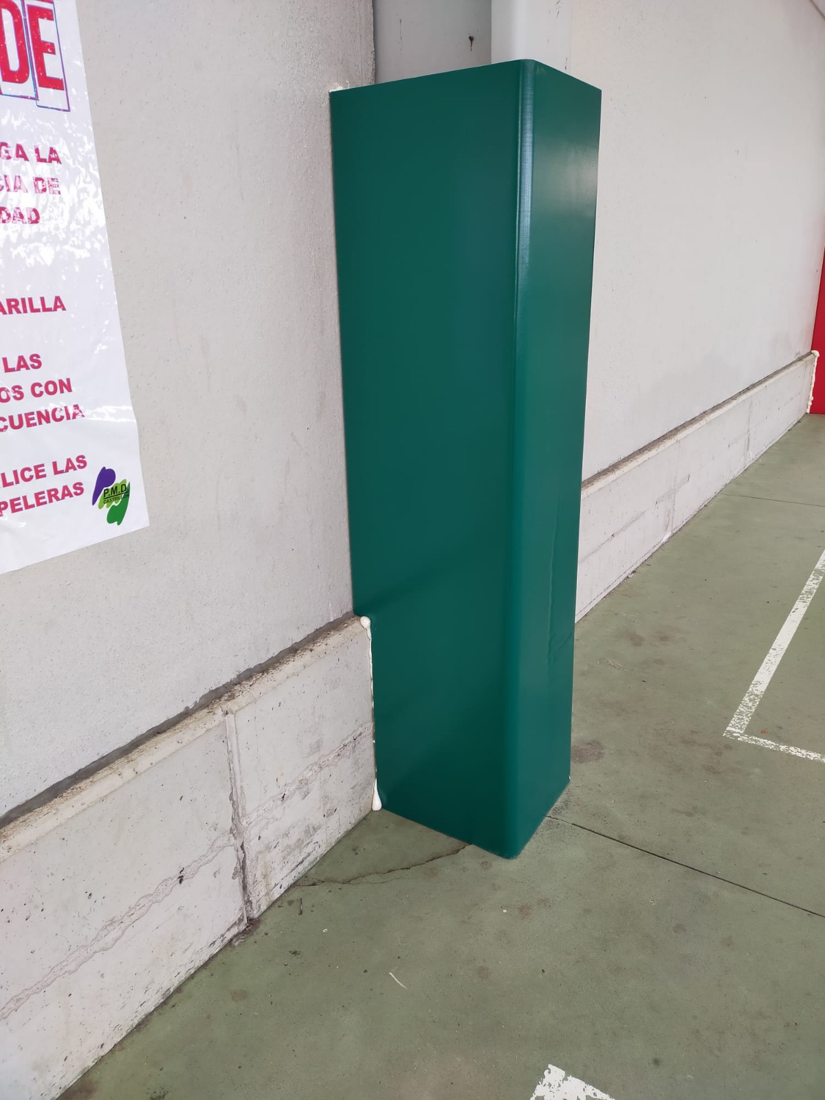 Protegemos a medida columnas circulares, cuadradas, torres de luz, postes para balones, farolas y cualquier tipo de columna o viga con forma irregular, con bases adaptadas o reforzadas para cubrir tornillos y aristas metálicas, si la estructura lo requiere.